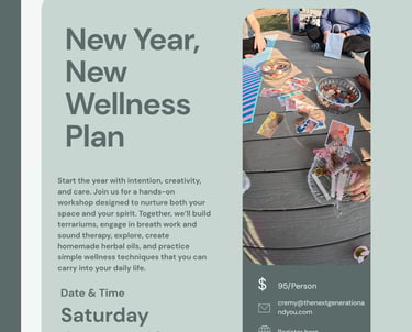 Start the year with intention, creativity, and care. Join us for a hands-on workshop designed to nurture both your space and your spirit. Together, weβll build terrariums, engage in breath work, explore herbal oils, and practice simple wellness techniques that you can carry into your daily life.
